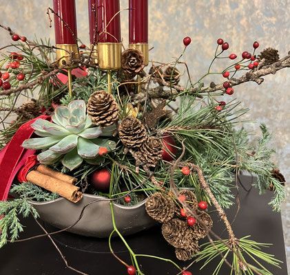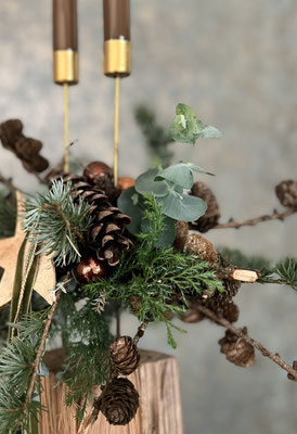 Gestalte dein ganz besonderes Advents-Arrangement wo Rustikales auf festliche Eleganz trifft.