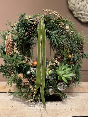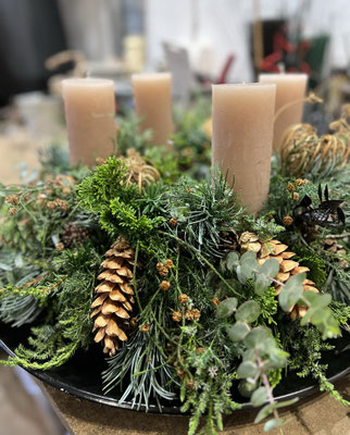 Gestalte deinen persönlichen Adventskranz aus vielfältigem Grün – stimmungsvoll, individuell und perfekt für den Tisch.